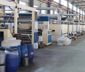 引進(jìn)國(guó)外水刺法生產(chǎn)流水線,重型劍桿織布機(jī)臺(tái),整形、熱熔、縫制、設(shè)備配套齊全。